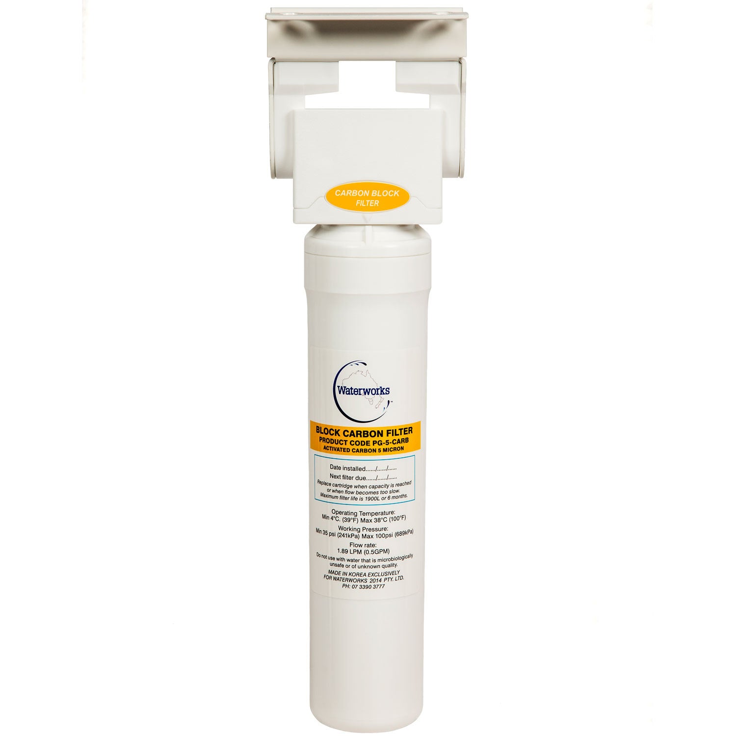 Waterworks PNP Swing & Twist Single Head & Bracket Kit – 5 Micron Carbon Block Cartridge